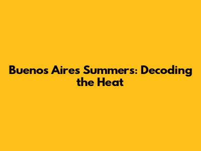 Buenos Aires Summers: Decoding The Heat