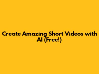 Create Amazing Short Videos With AI (Free!)