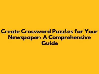 Create Crossword Puzzles For Your Newspaper