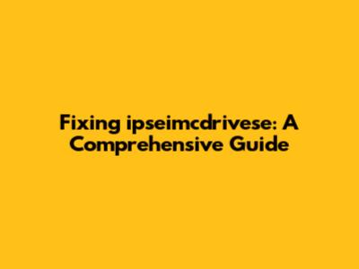 Fixing Ipseimcdrivese: A Comprehensive Guide