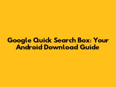 Google Quick Search Box: Android Download Guide