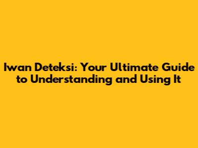 Iwan Deteksi: Your Ultimate Guide