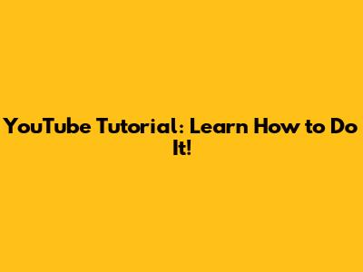 YouTube Tutorial: Learn How To Do It!